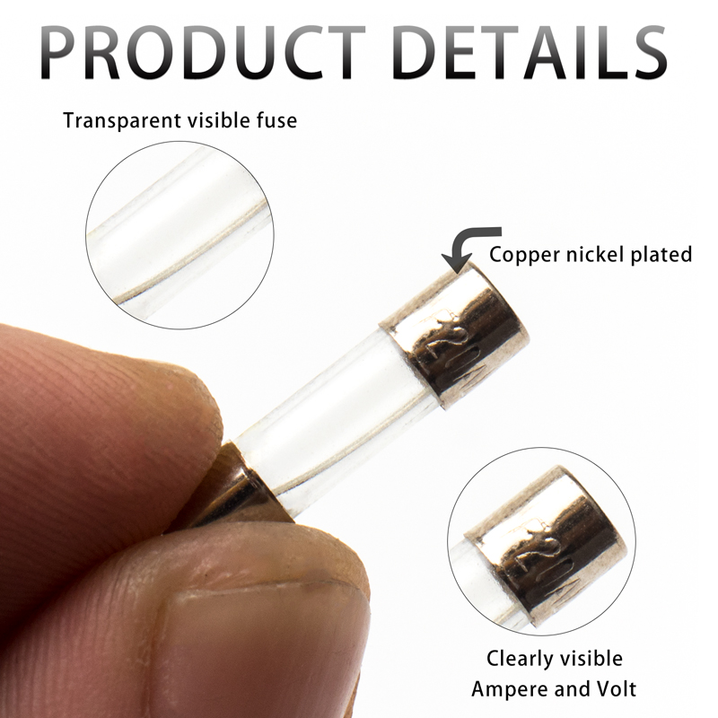 10 kinds of 100 pcs/1 box 5*20 fast-acting glass tube fuse car glass tube fuse matching kit 5X20 0.5A-20A household fuses