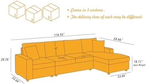 Measurements Seat Interior Width 110.26 Inches Seat Back Interior Height 18 Inches Minimum Required Door Width 116.93 Inches Seat Depth 21.65 inches