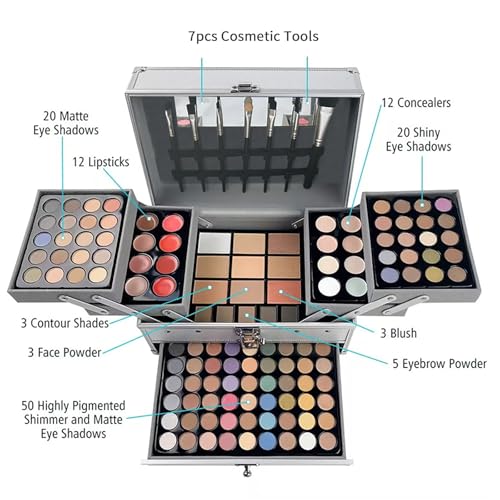 Makeup Kit Sets for Teens Women Full Kit with Bag,All in One Make-Up Gift Set Including 20 Colors Neutral Eyeshadow Palette,Lip Glosses,Eyeliner,Mascara,Eyebrow Pencil,Foundation,Brushes & More Kits