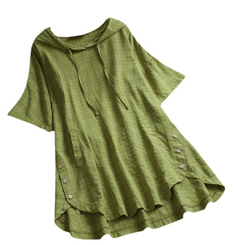 150Kg Plus Size Bust 153cm Women's Summer Hooded V-Neck Short Sleeve Loose Plaid T-Shirt 6XL 7XL 8XL 9XL 7 Colors