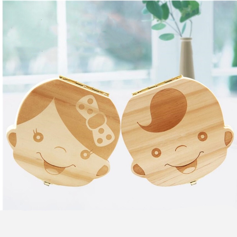 1PC Spanish English Baby Wood Tooth Box Organizer Milk Teeth Storage Collect Teeth Umbilical Cord Save Gifts for Kids Girls