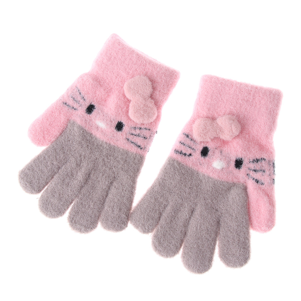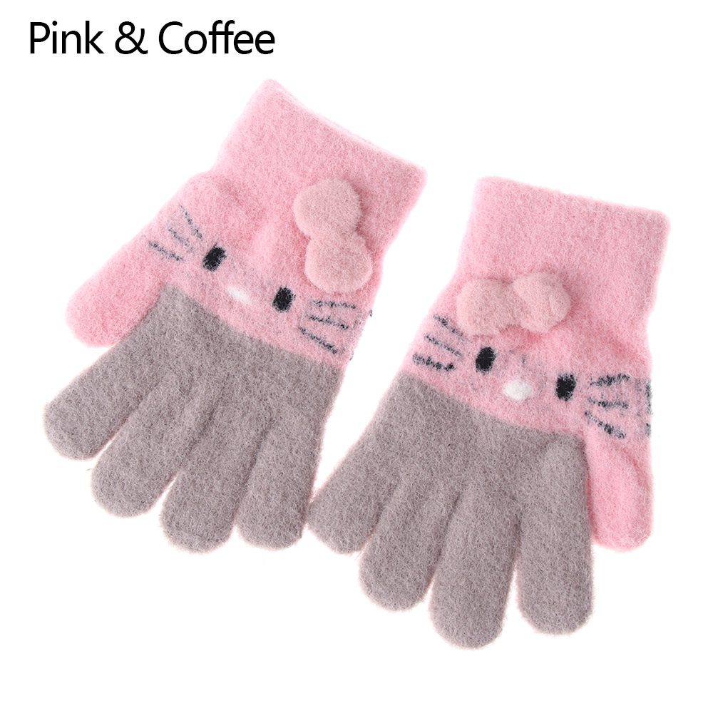 1Pair Kids Knitted Gloves Winter Warm Children Full Fingers Mittens Girls Cute Cartoons Soft Gloves for 3-10 Years Old