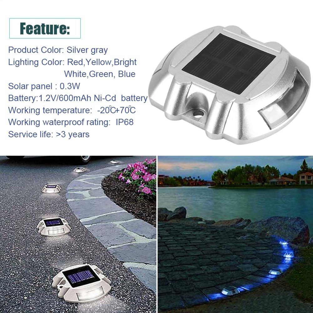 6 bright LED lights illuminate your driveway for added safety at night with low power consumption.