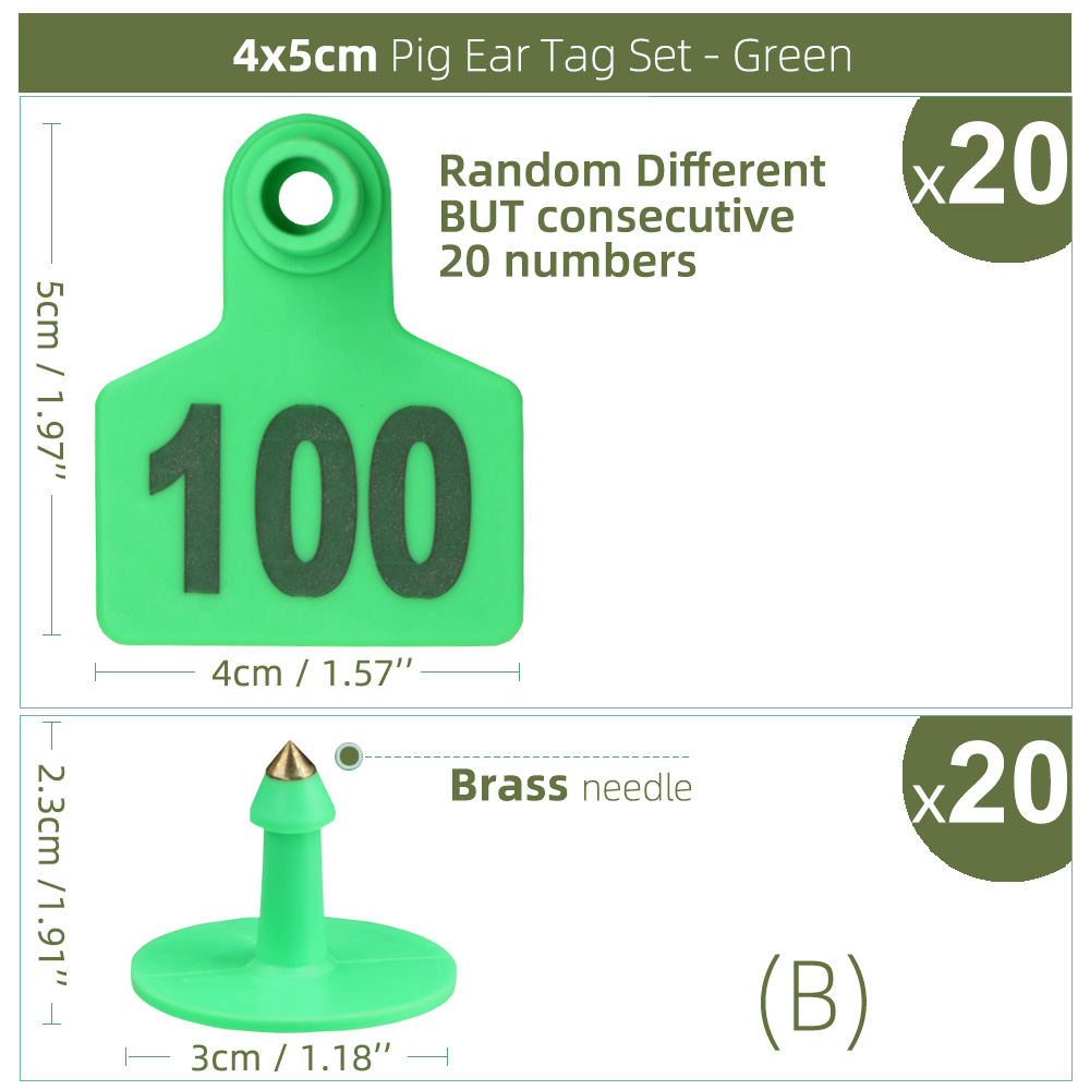 - Size of small ear tag: 40*50mm/1.57* 1.97in(W*L).