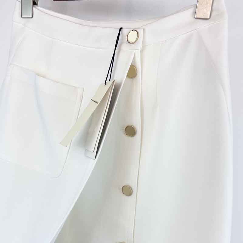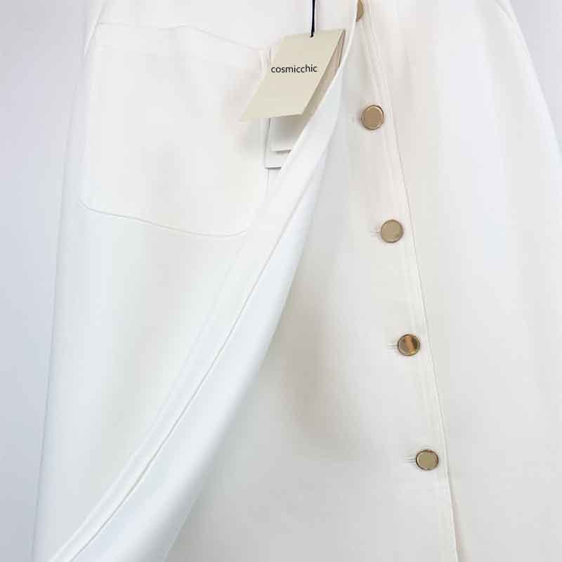 22 New Elegant White Skirts Women Fashion Runway Single Breasted Front Slit Skirt Temperament High Waist Pockets A-line Clothes.A0766