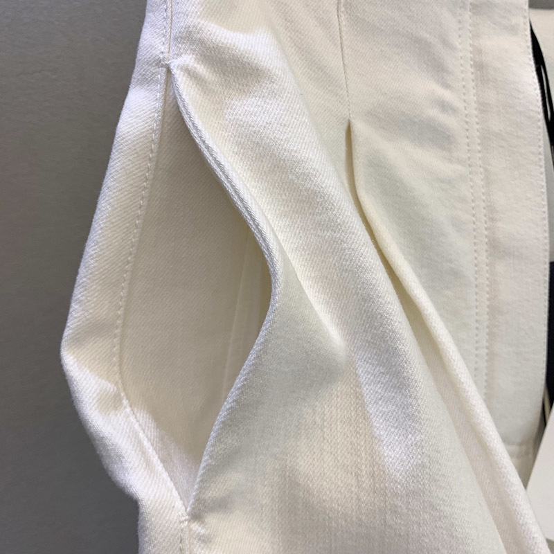 22 Leisure White Denim High Waist Shorts Suits Women Lapel Pocket Long Sleeve Belted Denim Jacket Pleated Lettering Buckle ShortA0474