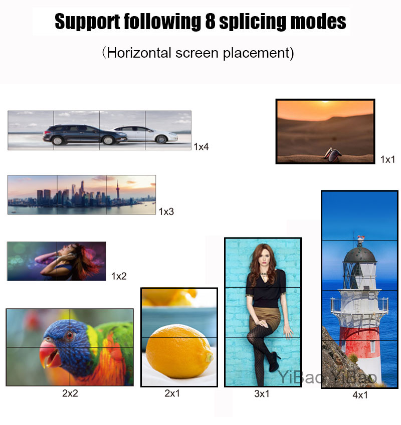 Support 1x1/2X2/1X2/2X1/1x3/3x1/1x4/4x1 8 splicing modes