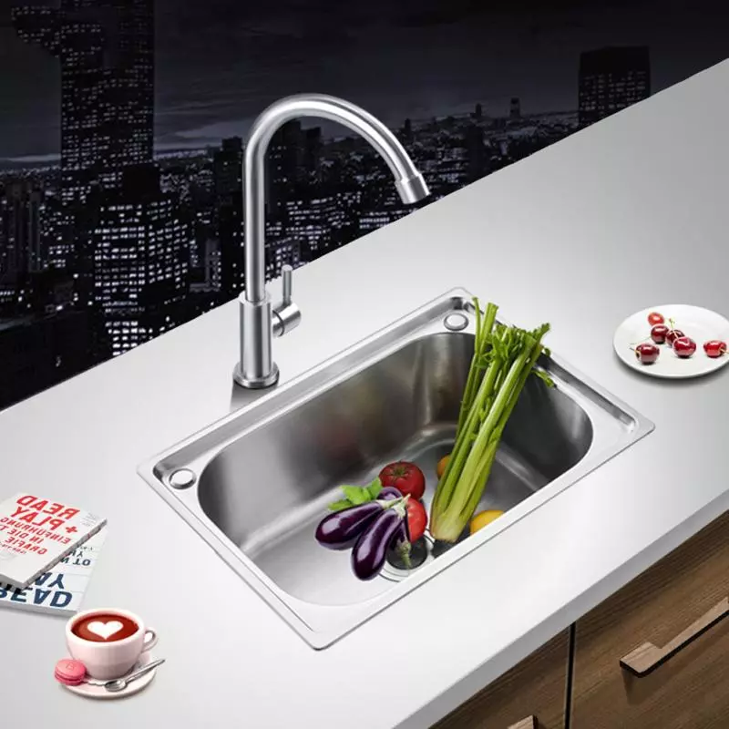 304 Stainless Steel Sink Kitchen Thickened Sink Single Sink Basin Sink Single Large Single Slot Set With Drain Plating Sink HWC