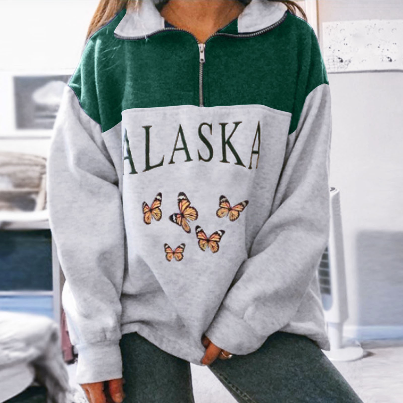 Women's Casual Long Sleeve Printed Zipper Printed Long Sleeve Tops Sweatshirts