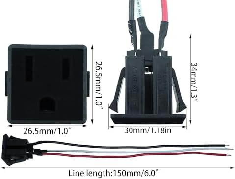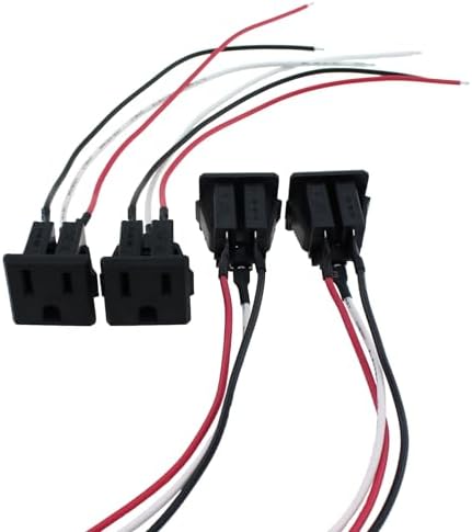 4PCS 3 Pin Panel Mount Plug Adapter 15A 125V AC Square Power Socket with 18AWG Cable for Power Cabinet Vehicle Power Supply Lighting Equipment Communication Cabinet