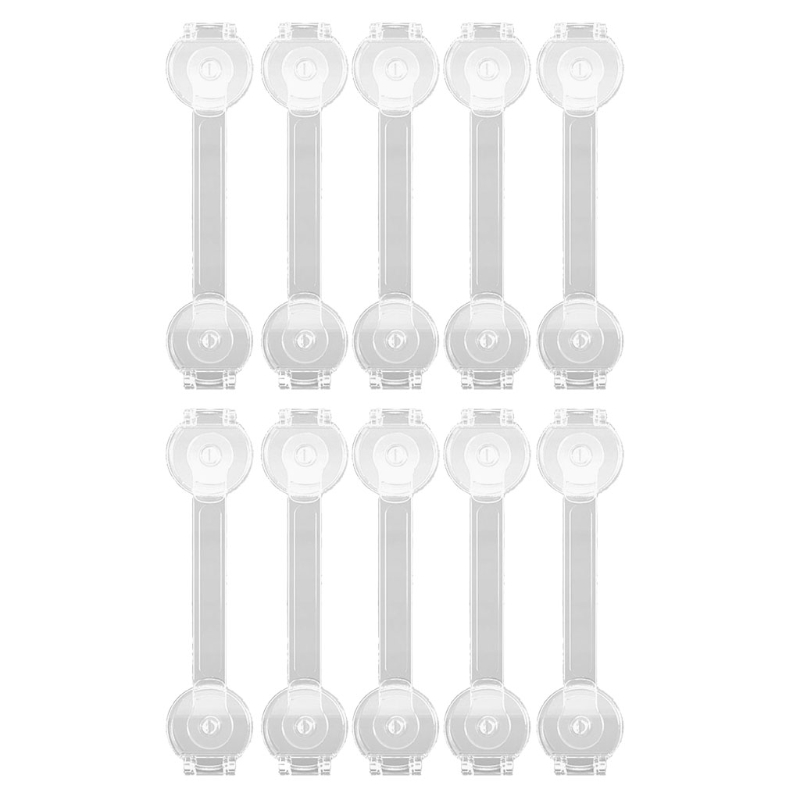 100% brand new and high quality Features: Children love to explore and a closed cabinet door will peak their natural curiosity. In most households cabinets contain cleaning products, insecticides, medications and other products that could be harmful to your baby if ingested or inhaled. These safety locks are just the very useful product to secure your cabinets from your baby's curious fingers. Easy to install, first, open the safety lock and peel off the backing from the adhesive pad, then affix the pads on the cabinet door respectively; when you need to open the cabinet, just press the band, then you will open the door as you want Quick and easy to open. The one hand release operation is easy for an adult hand, but difficult for a child Can be used in refrigerators, cabinets, windows, bookcases, doors, Toilet lid,etc Package includes: 1 Set x Safety Plastic Lock