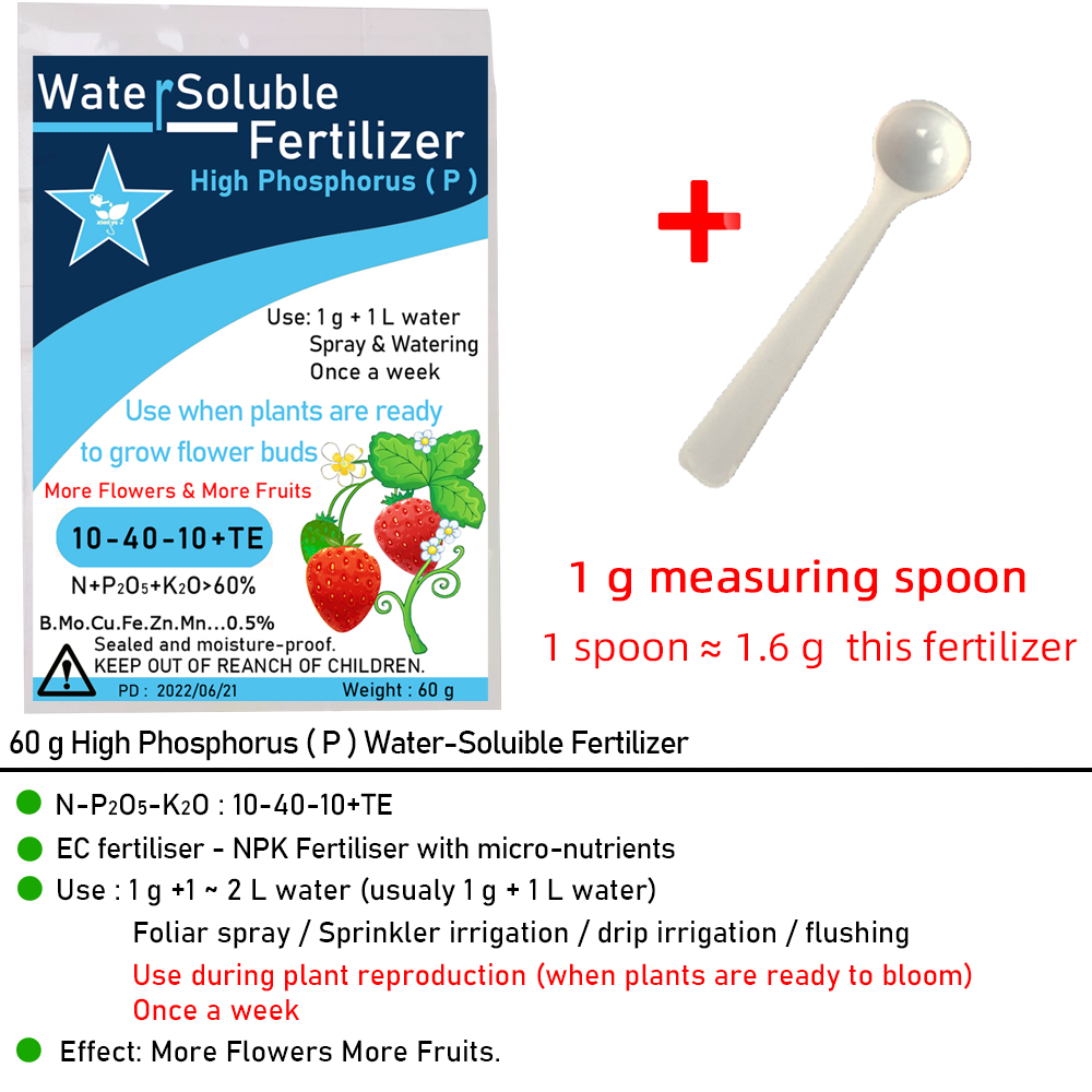 60g Professional Flower Water-Soluble Fertilizers High Phosphorus ( P ) NPK Plants Grow More Flowers & More Fruits Supplemental Plant Nutrition For Bonsai