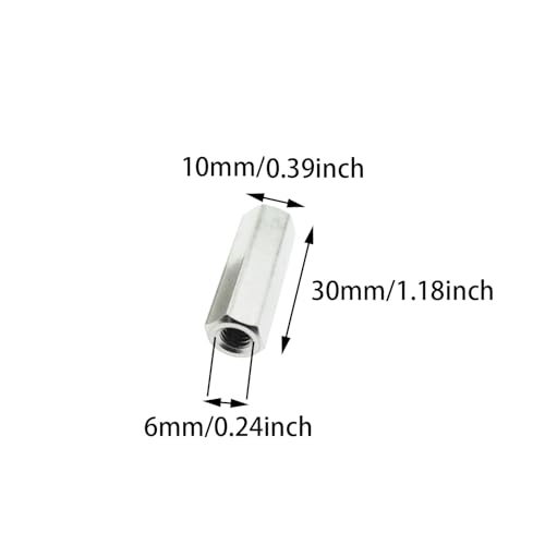 6PCS M6 x 1 Pitch 30mm Length 304 Stainless Steel Metric Hexagonal Coupling Nut M6x30 for Household Appliances Communication Equipment Ship Assembly and Other Machinery Industry