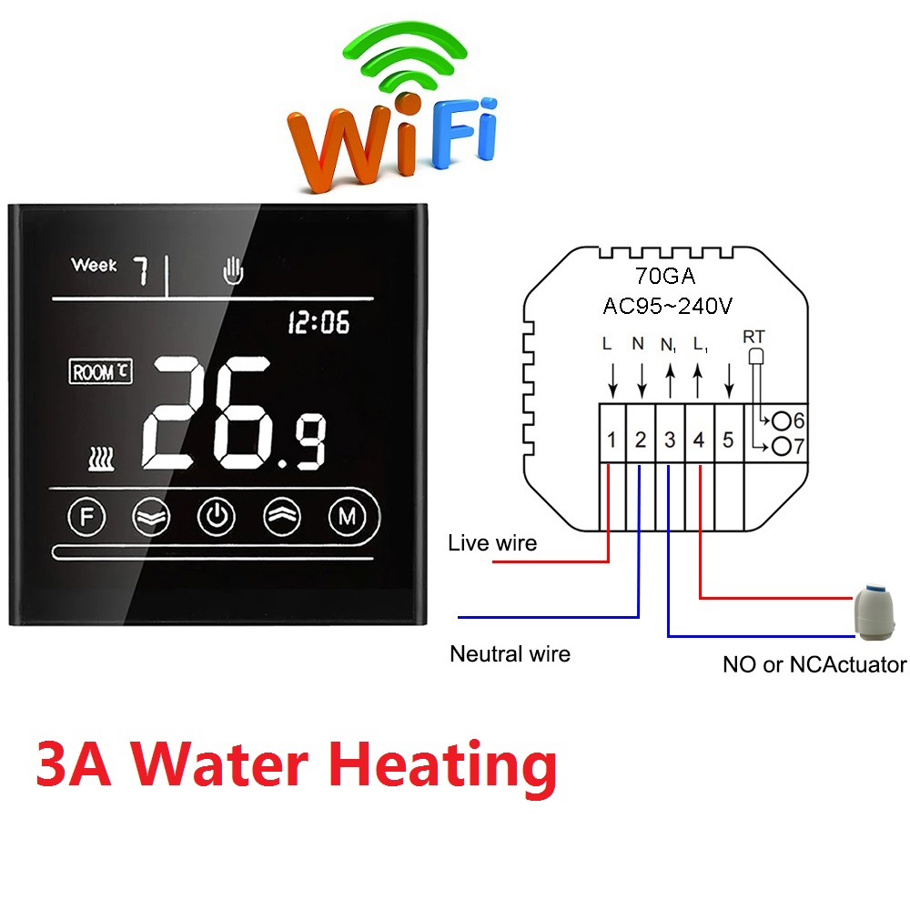 MK70-GA-WiFi: Water floor heating to control NO NC actuator or the electromagnetic valve with WiFi function, Voice control, 3A.