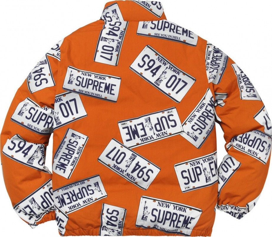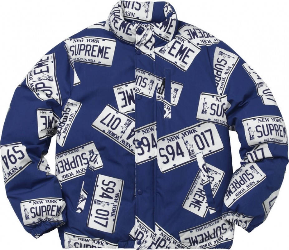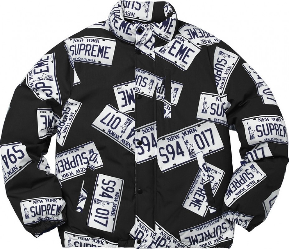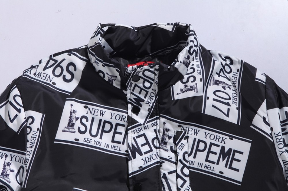 A+ Replica Supreme License Plate Puffy Jacket