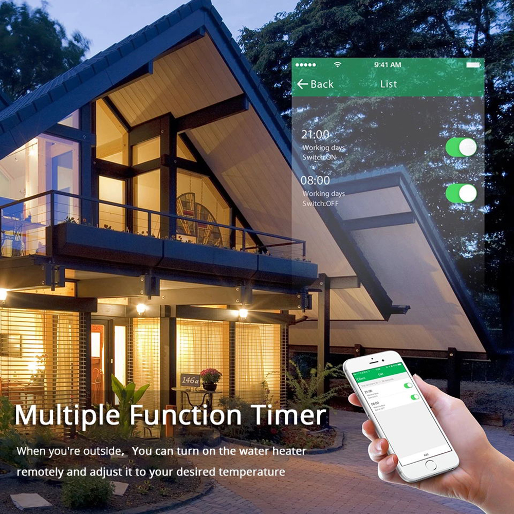3.Timing Function:Take full control of your home or office lights thanks to schedule timer that will allow you to plan the exact time to turn water heater on/off automatically