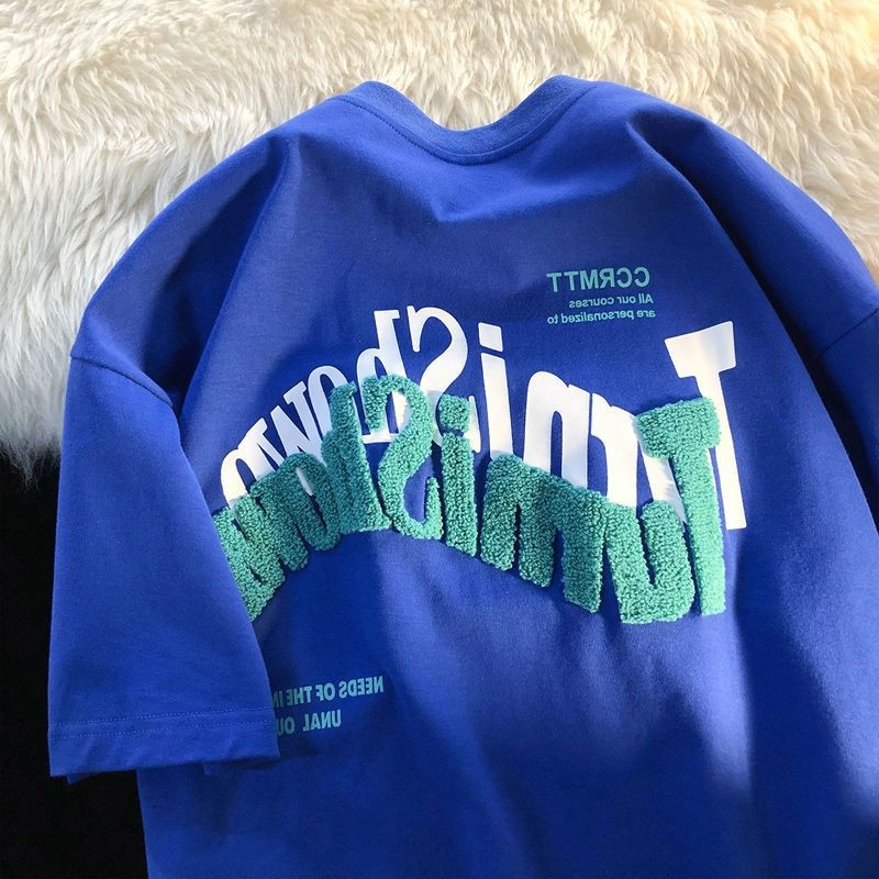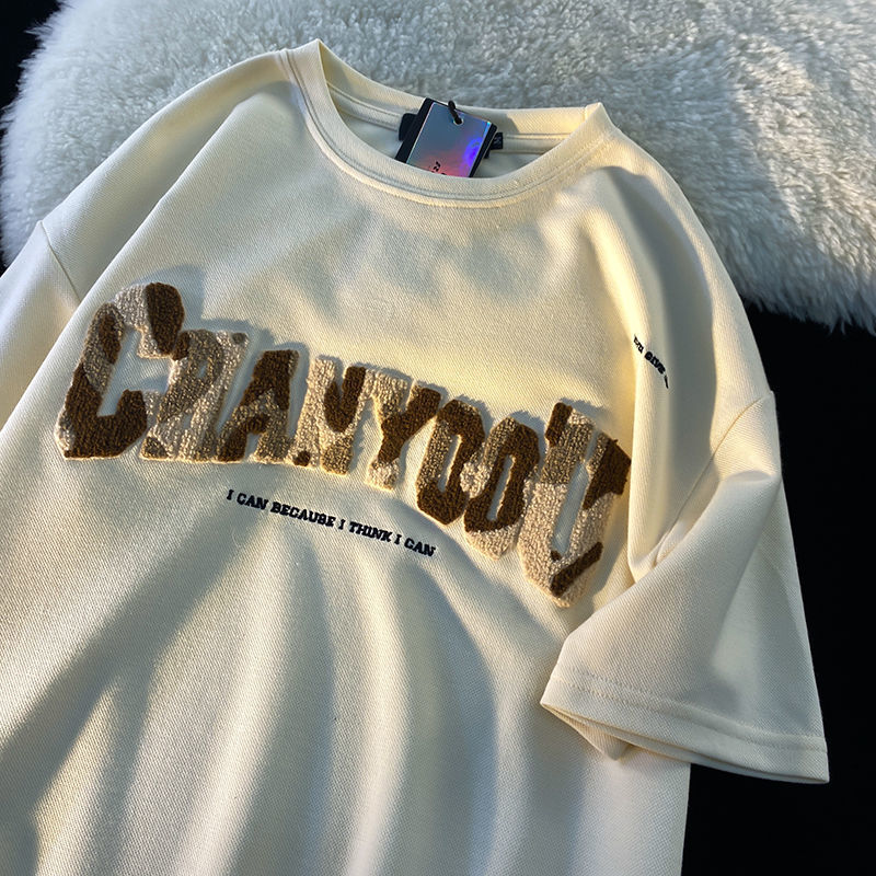 American letter embroidery short-sleeved T-shirt women's summer Y2K high street casual loose couple round neck T-shirt