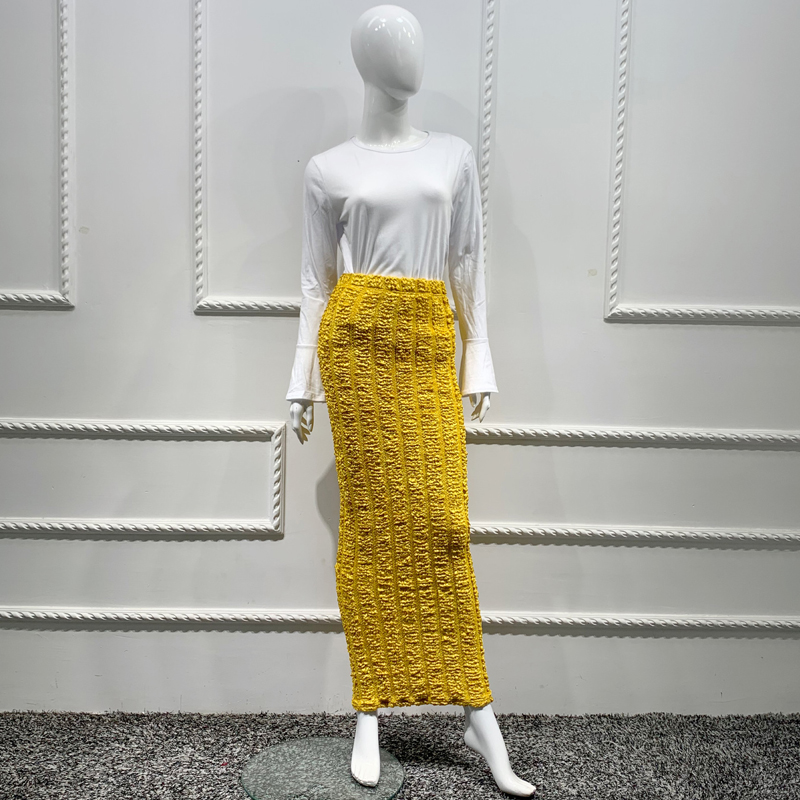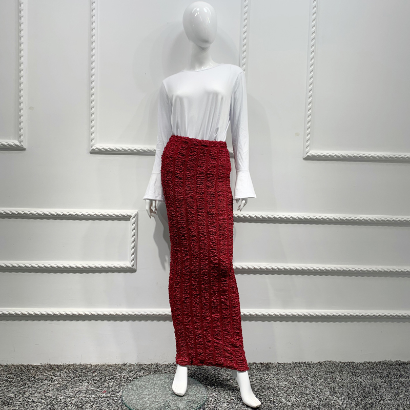Autumn Stretchy Bandage Pencil Knitting Maxi Skirt Casual Bottoms Women Fitted Long Bodycon Skirt High Waist Muslim Chic Modesty