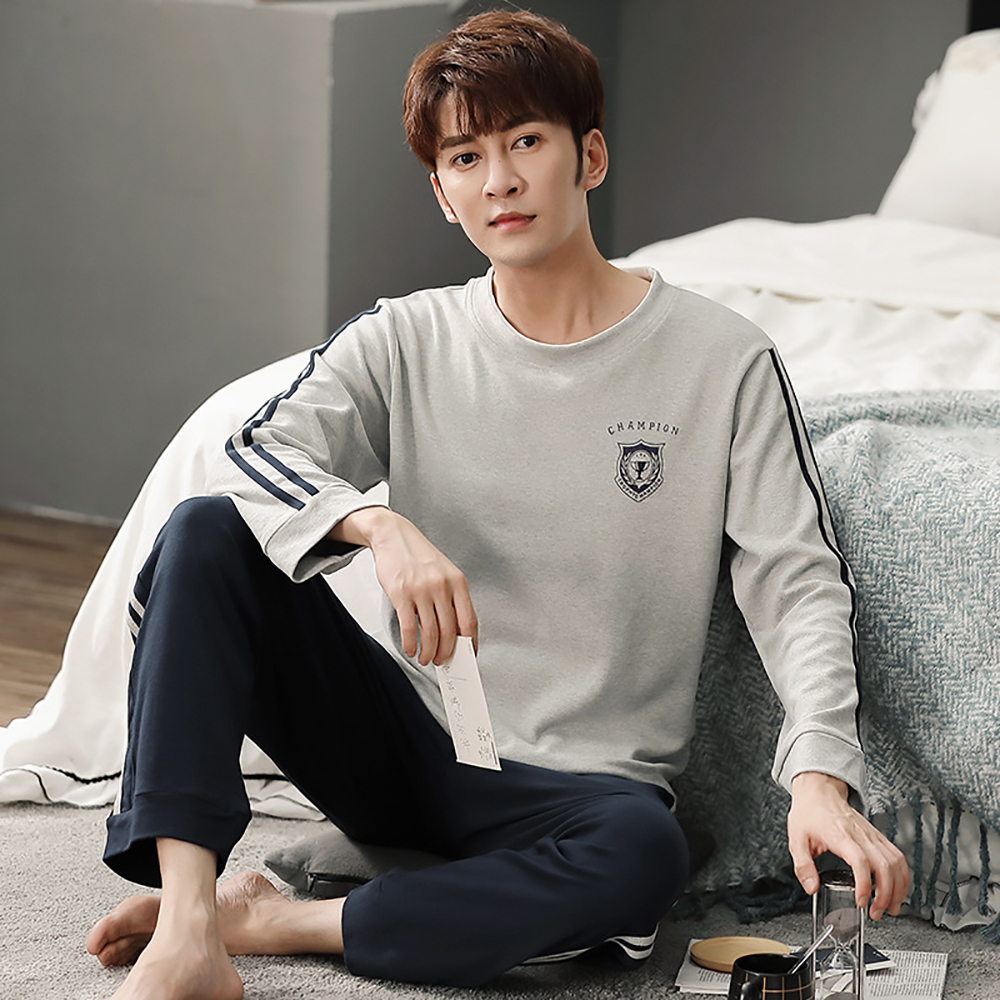 Autumn Winter Men Cotton Pajamas Set Fashion Casual Striped Patchwork Sleepwear Suit Home Clothes Loose Home Wear Plus Size 4XL