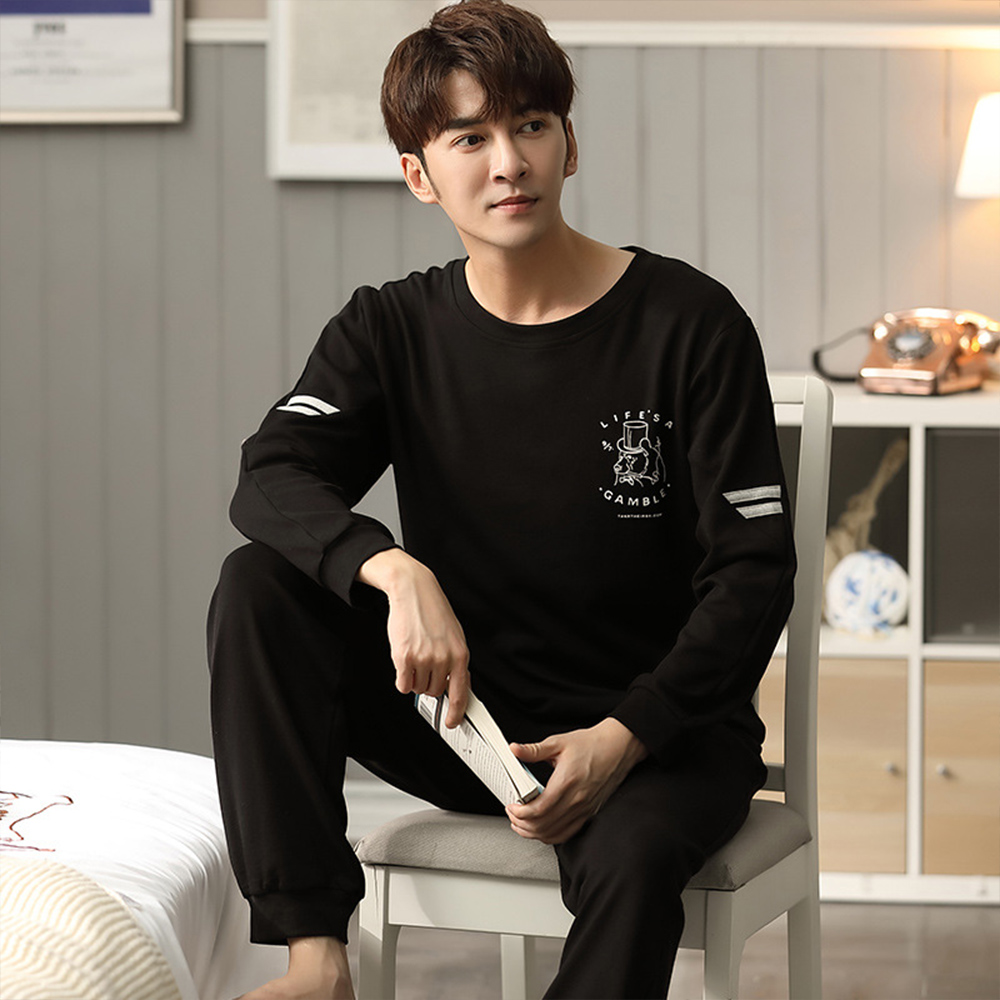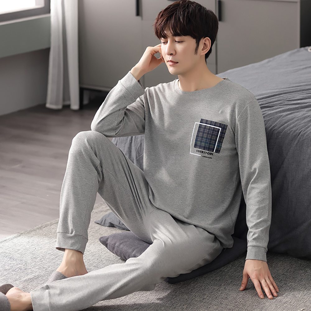 Autumn Winter Men Cotton Pajamas Set Casual Striped Patchwork Sleepwear Suit Home Clothes Loose Home Wear Plus Size 4XL