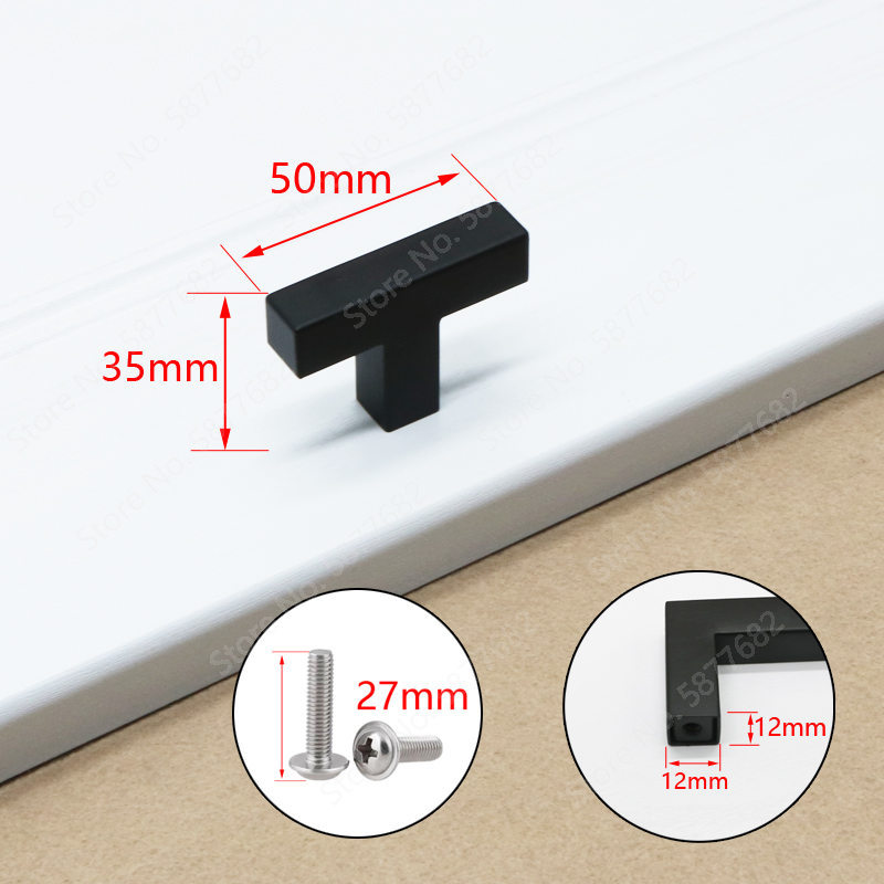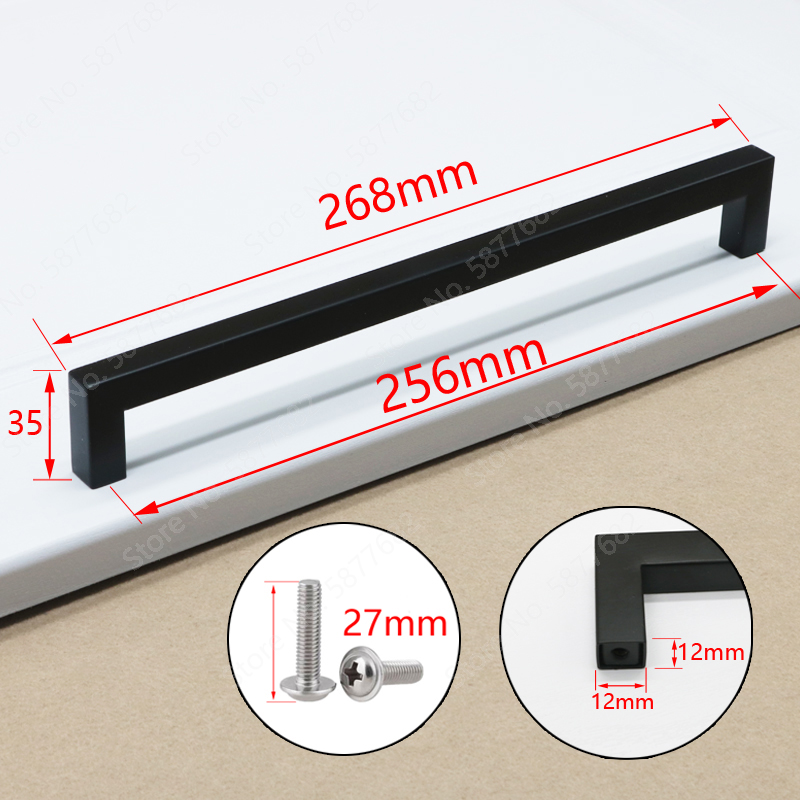 Black Cabinet Handle Square Furniture Hardware Stainless Steel Kitchen Door Knobs Cupboard Wardrobe Drawer Pulls