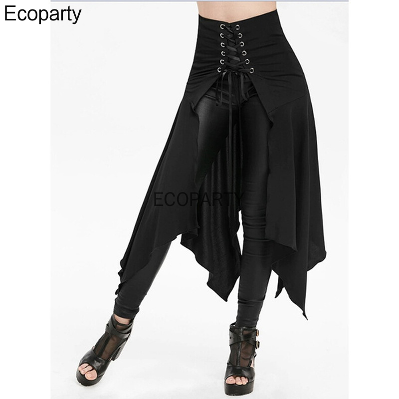 New Black Medieval Vintage Gothic Skirt High Waist Lacing Irregular Umbrella Skirt Halloween Steampunk Long Skirts For Women