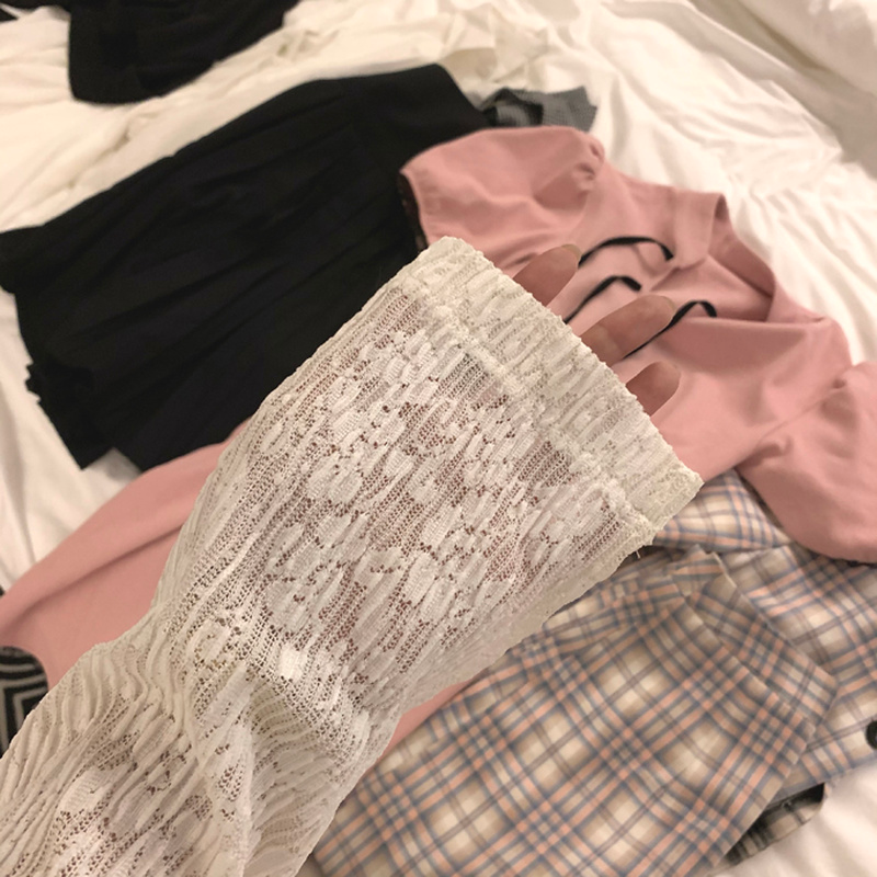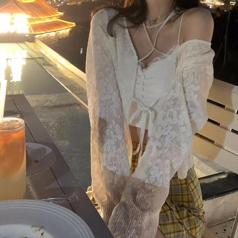 Blouses Women Solid Tops Sun-proof All-match Daily Sweet Mesh Open Stitch Cozy Crop Soft Lace Mujer Design Streetwear