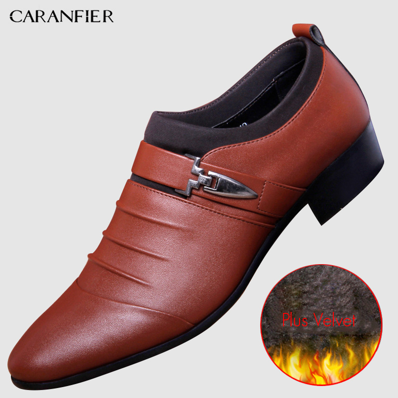 CARANFIER British Men's Slip On Split Leather Pointed Toe Men Dress Shoes Business Wedding Oxfords Formal Shoes For Male