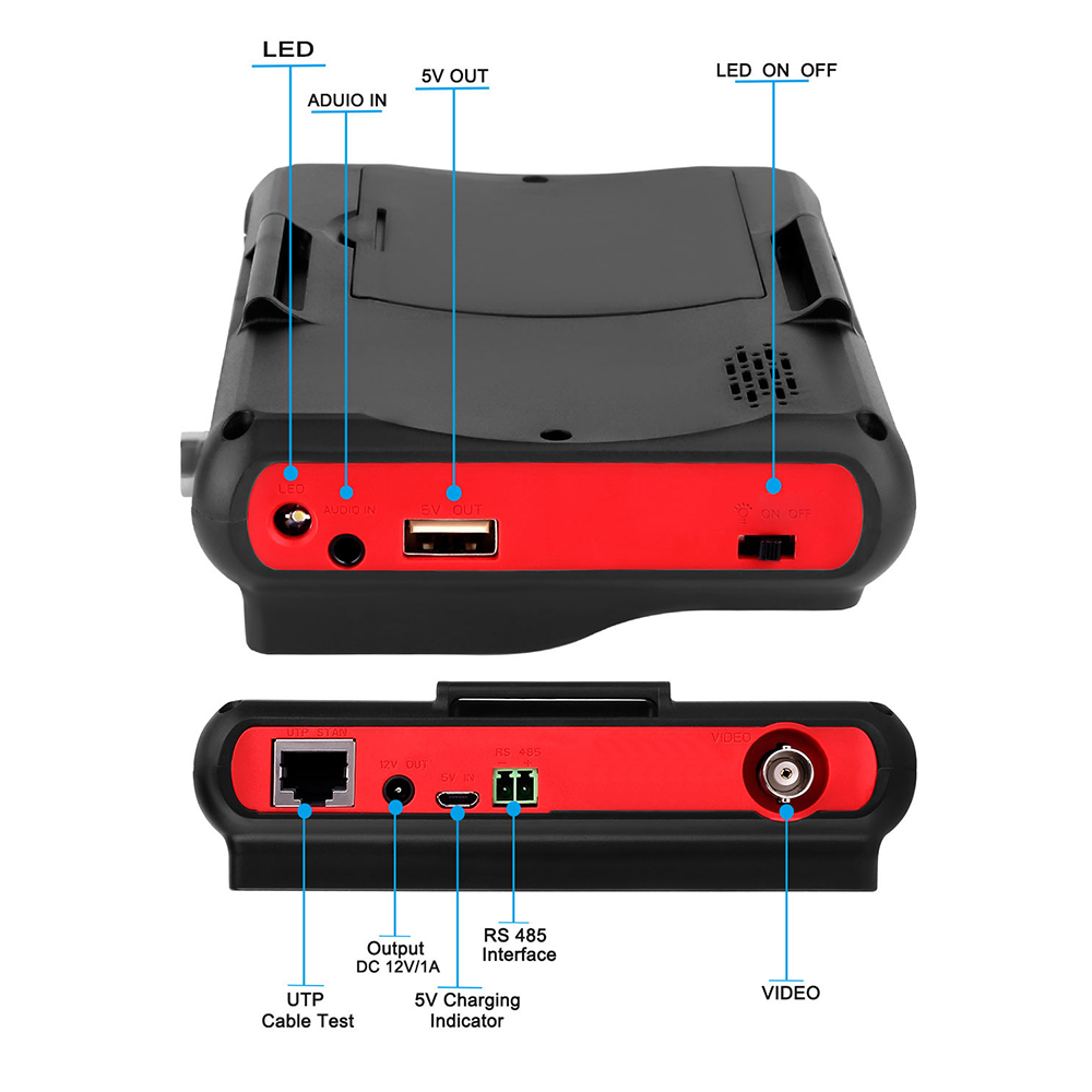 The new HDCCTV Test monitor support "4in1"(AHD/TVVCVVCVBS)video format of up to 2MP~8MPresolution. It also supportPTZ control by RS485 and other special features suchas DC12V/USB/5V out put, audion test,UTPcable test,LED lighting etc.lt is designed to bring installer maximum conveniecy duringthe installation.