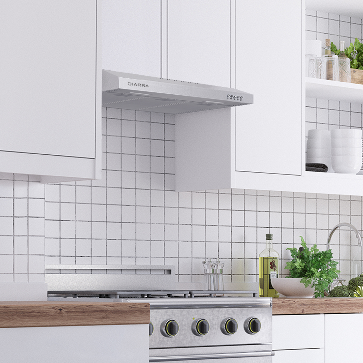 CIARRA under cabinet range hoods ensure powerful ventilation performance for an odourless and fume-free kitchen.