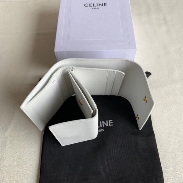 Crafted in grained calfskin leather by the House of Celine, this small trifold wallet with a flap offers enough space to fit into even a tiny bag or clutch, yet with space for coins, notes and credit cards, this neat wallet is the ultimate mini companion. Coupled with an elegant design with golden finishing touches.