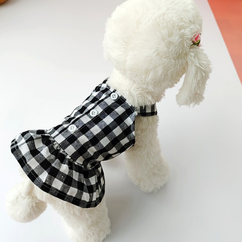 Pet plaid sling skirt,cotton material,comfortable fabric.The plaid design adds to the fashion sense of the skirt.The buckle on the back makes it more convenient for pets to wear.