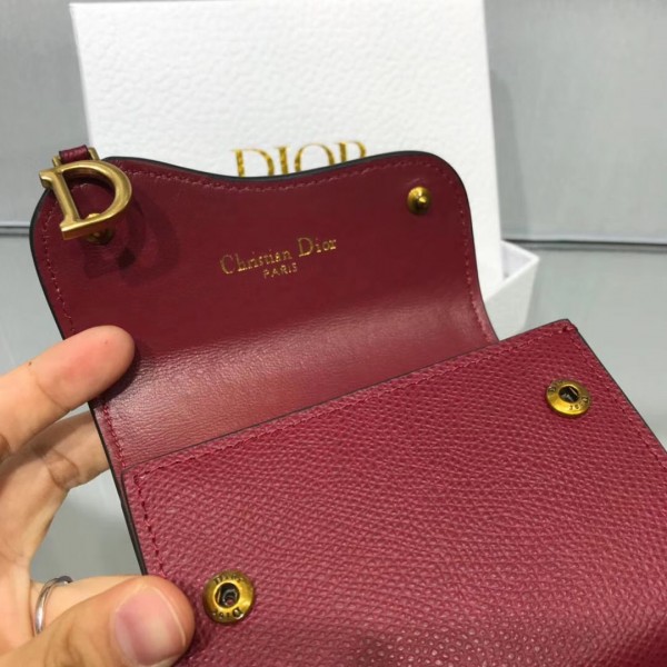 Dior Mini Saddle Tri-Fold Wallet In Scarlet Red Calfskin
