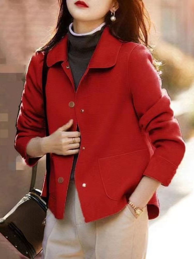 Elegant Women Coat Version Simple Solid Color Woolen Coat Temperament Loose Autumn Short Jacket Women