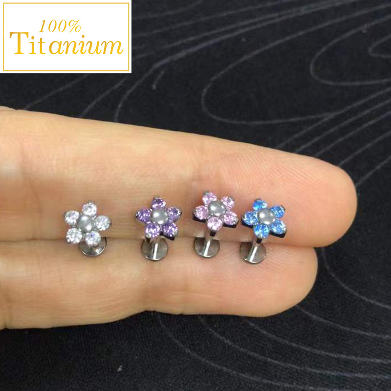 1PC F136 Titanium Labret Piercing Lip Studs Cartilage Tragus Helix Piercing Ear Nails Zircon Flower Earrings Body Perforated Jewelry