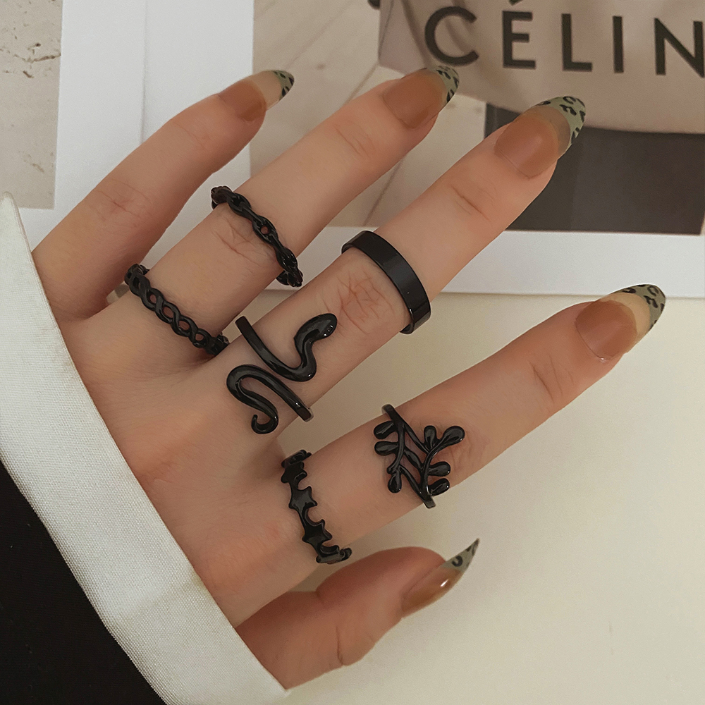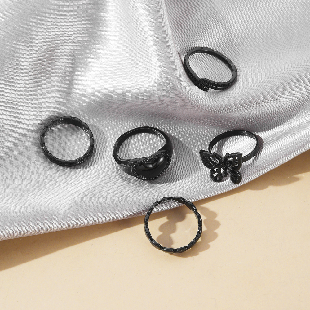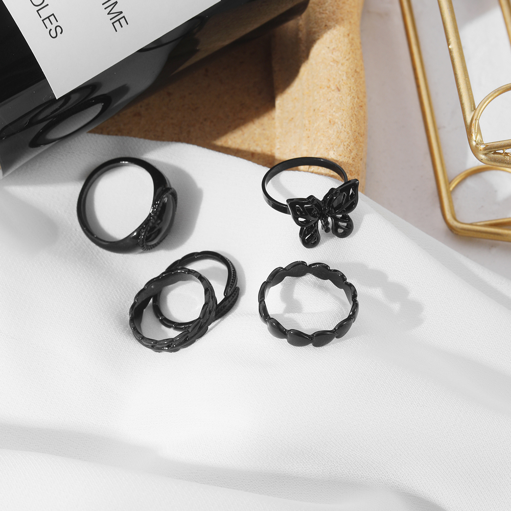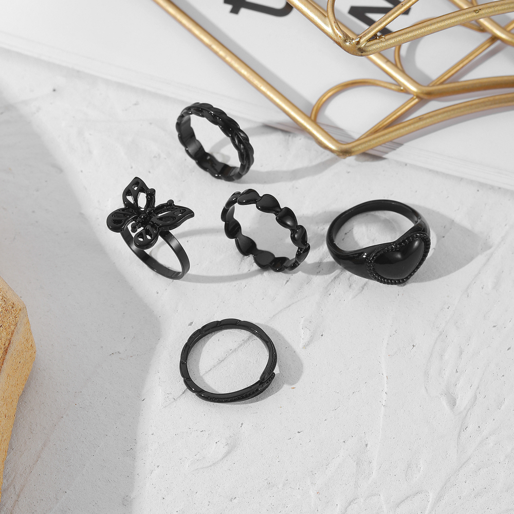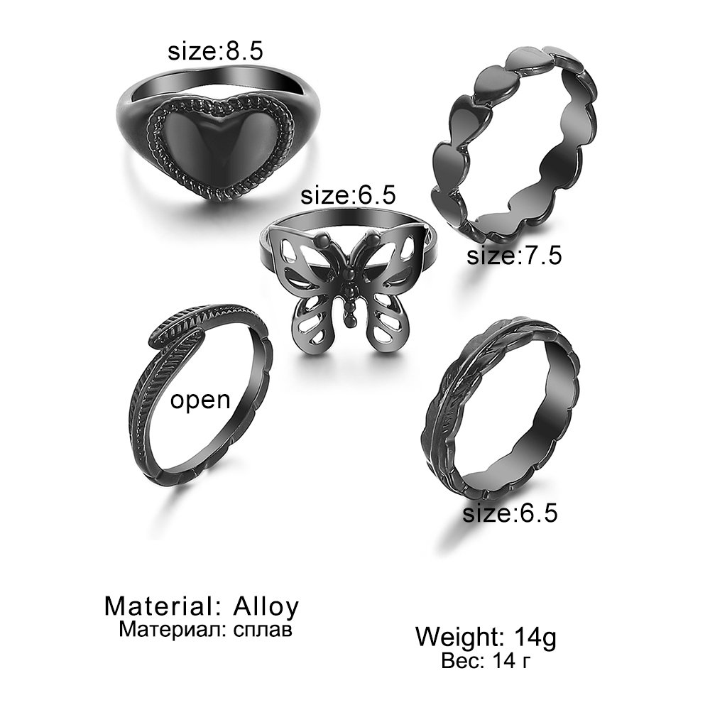 FAMSHIN Bright Black Metal Butterfly Love Rings Set for Women Girls Geometric Gothic Knuckle Joint Finger Ring Trendy Jewelry