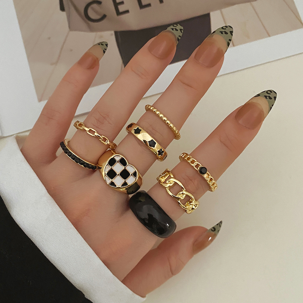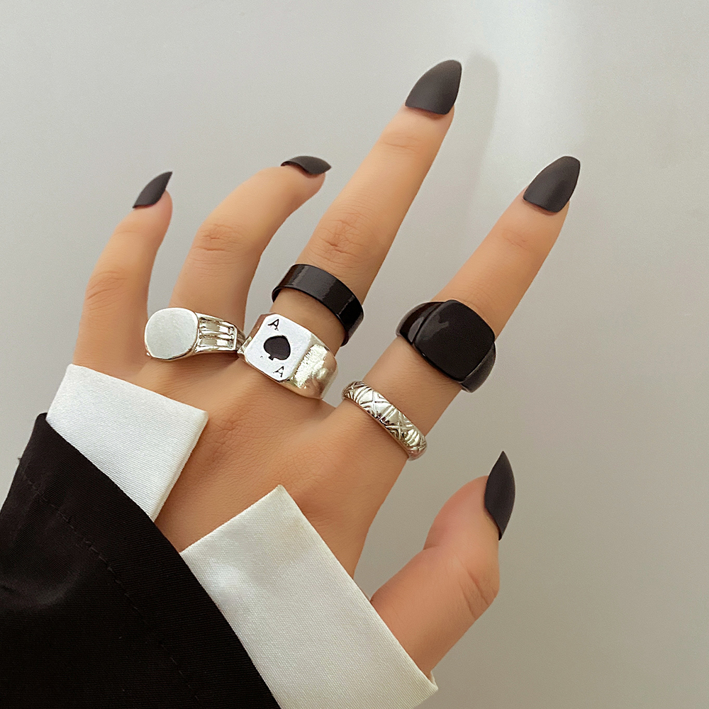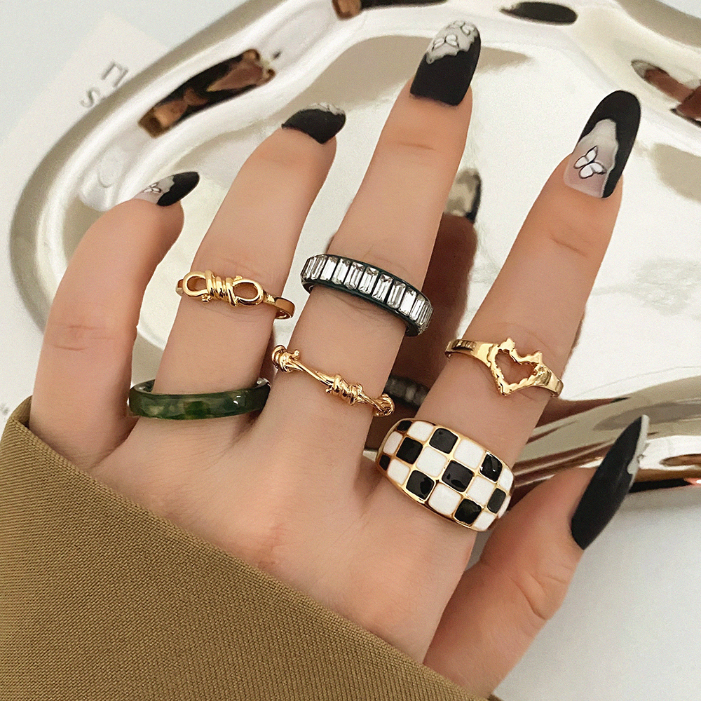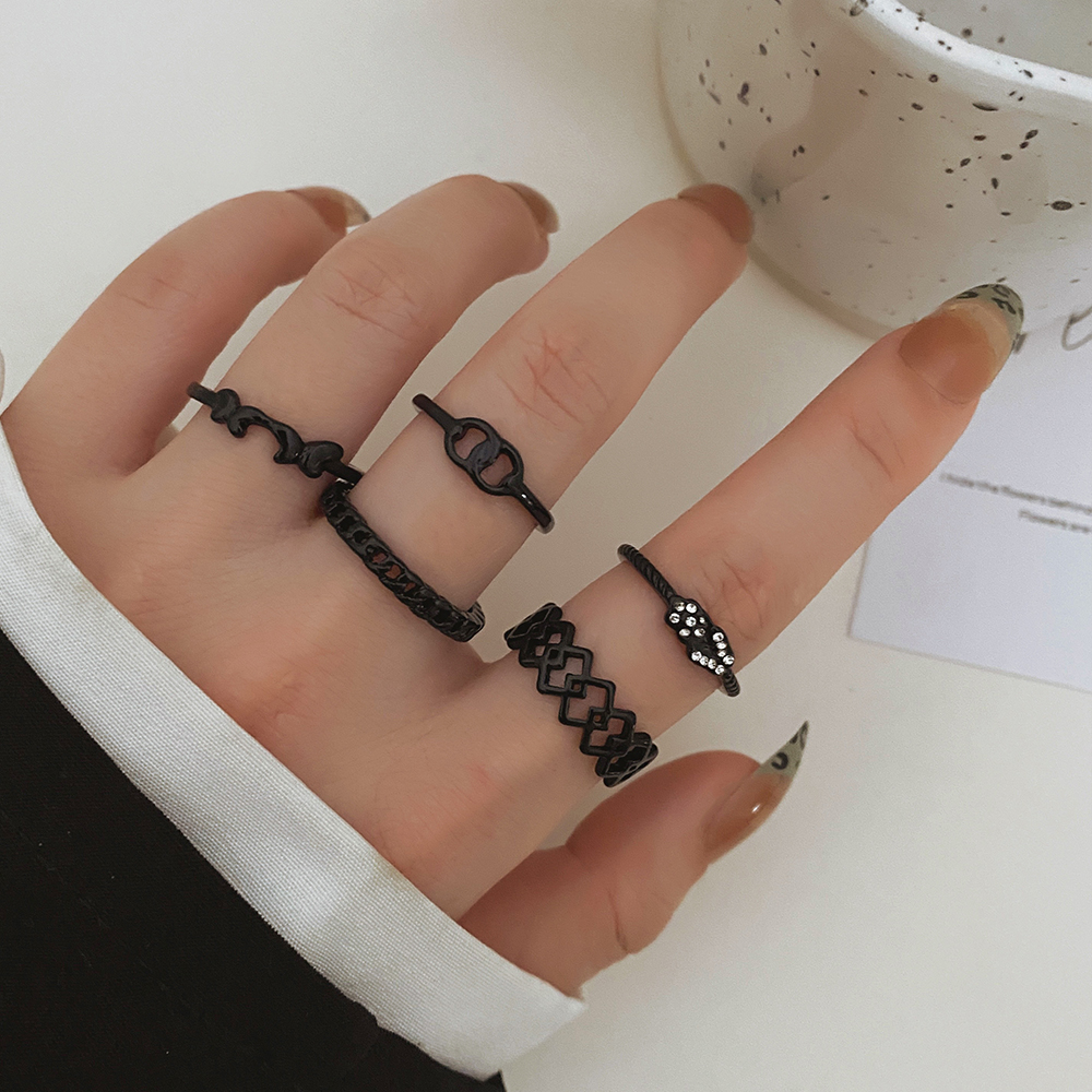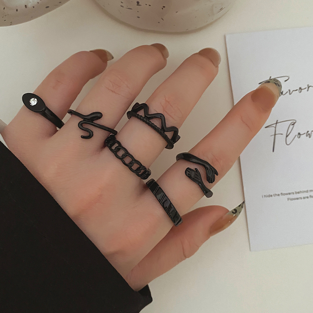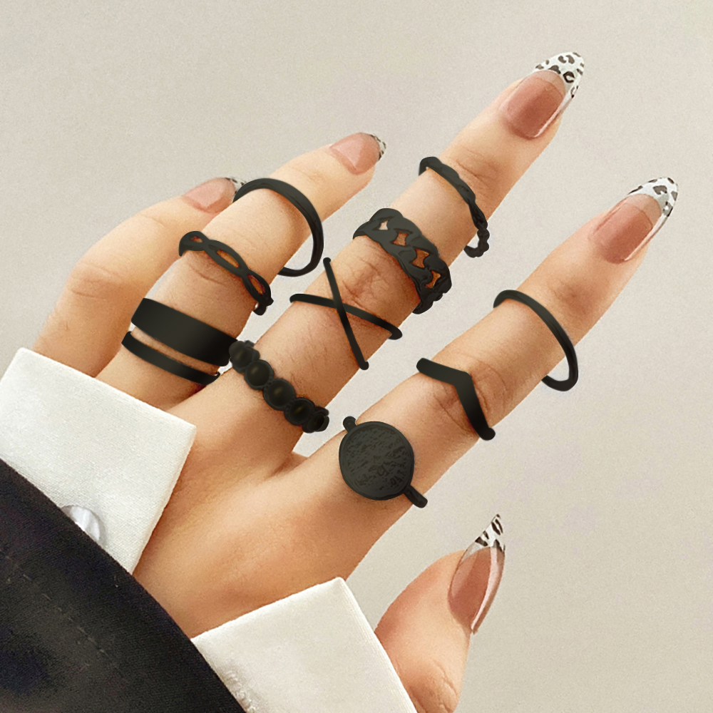 FAMSHIN Bright Black Metal Butterfly Love Rings Set for Women Girls Geometric Gothic Knuckle Joint Finger Ring Trendy Jewelry
