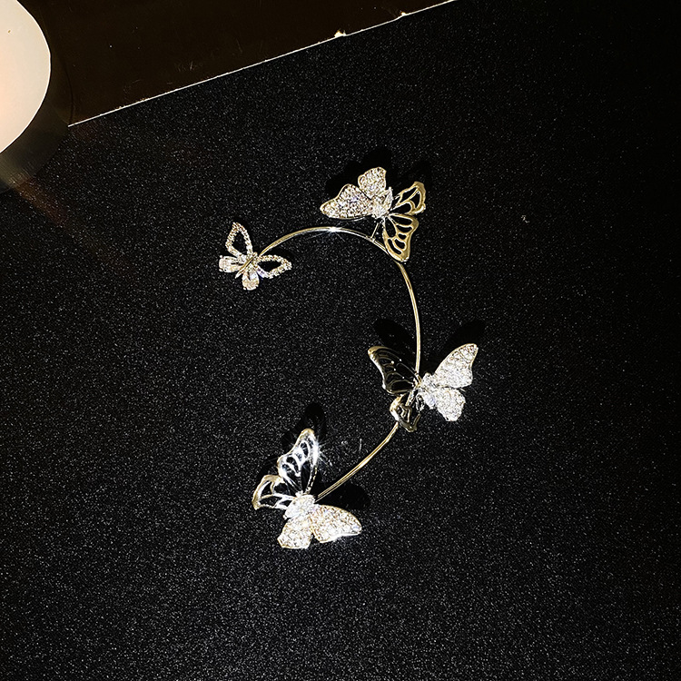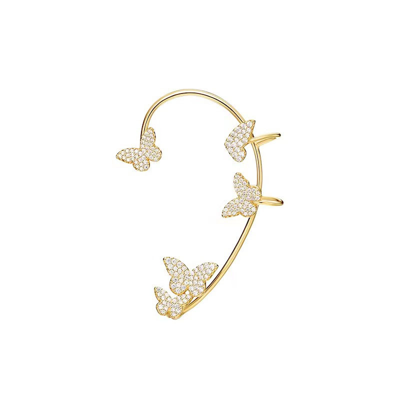 Gold Silver Color Metal Butterfly Ear Clips Without Piercing For Women Sparkling Zircon Ear Cuff Clip Earrings Wedding Jewelry