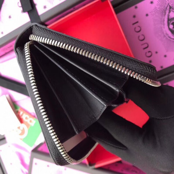 The bee-a symbol first seen in Gucci ready-to-wear in the 1970s-was taken from the archives and reintroduced in the Fall Winter 2015 collection. Here, it is printed at the center of a zip around wallet made in GG Supreme canvas, a material with low environmental impact.