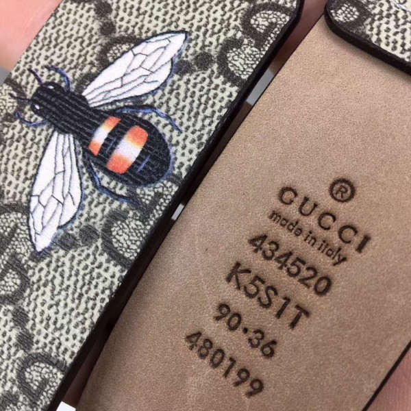 The bee, thought to symbolize wisdom and power, emerges as one of the signature details of Alessandro Michele’s collections. Here, it is printed on the strap of a belt in GG Supreme canvas, a material with low environmental impact.
