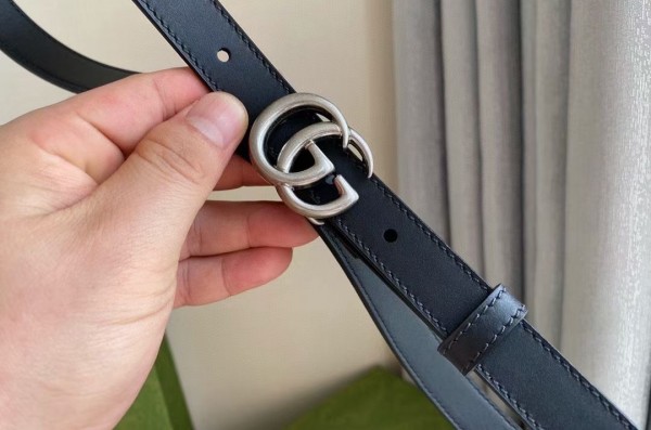 Gucci Black GG Marmont 20MM Belt with Silver Buckle