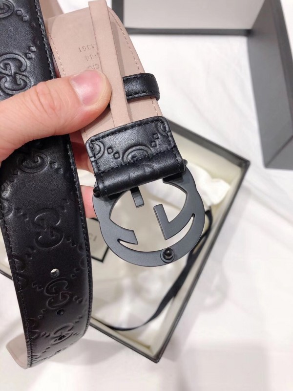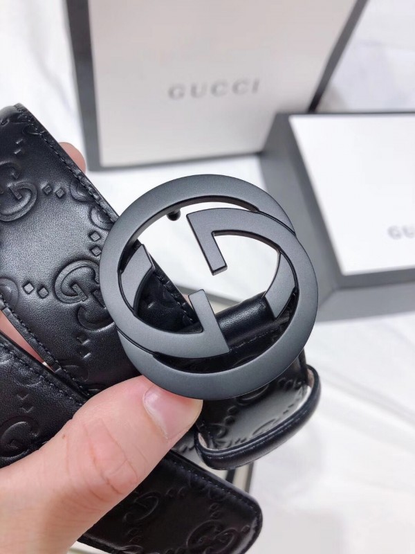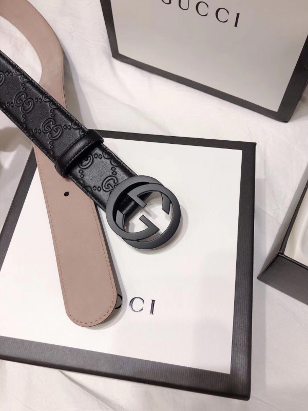 Gucci Black Signature Leather 38MM Belt with Interlocking G Buckle