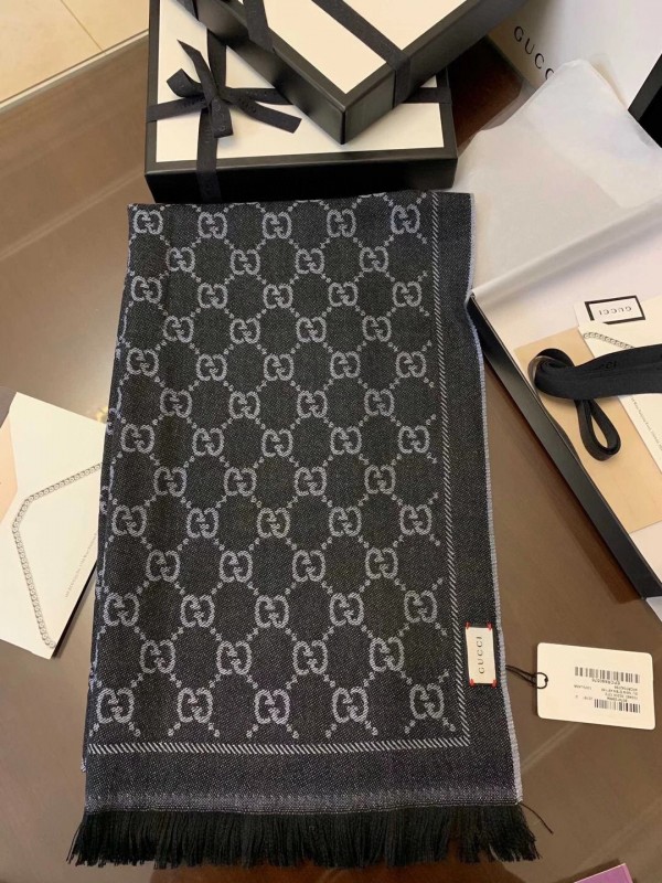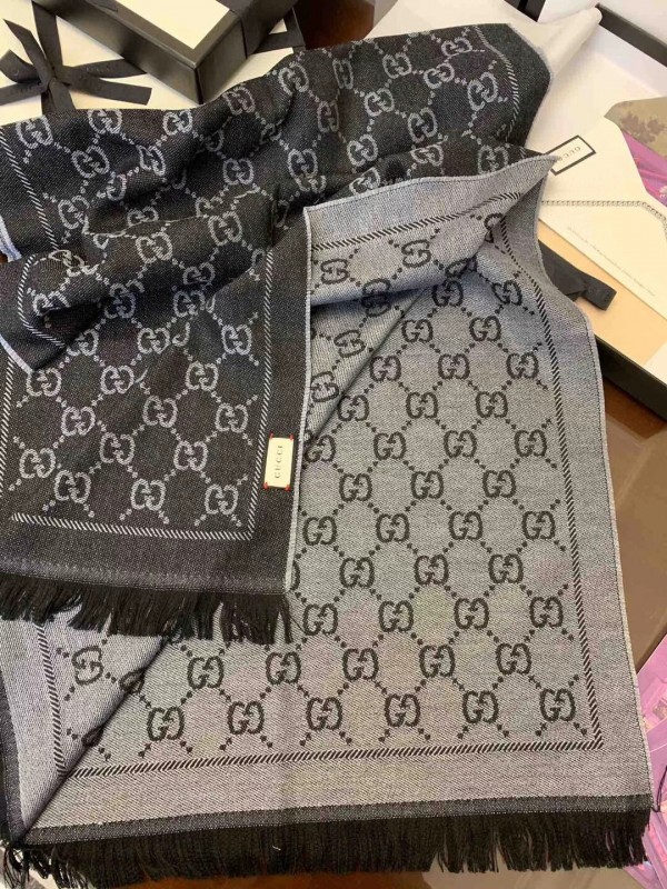 Refined with fringe edges, this double jacquard wool scarf features the House’s trademark GG pattern, first introduced in the ’70s. The combination of black and grey shades makes this a stylish and versatile accessory for every day.