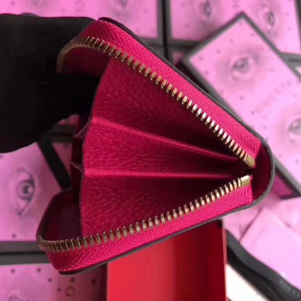 Inspired by vintage prints from the eighties, the Gucci logo is brought to the forefront. The retro-style motif is presented on the front of a zip around card case in supple, textured leather.