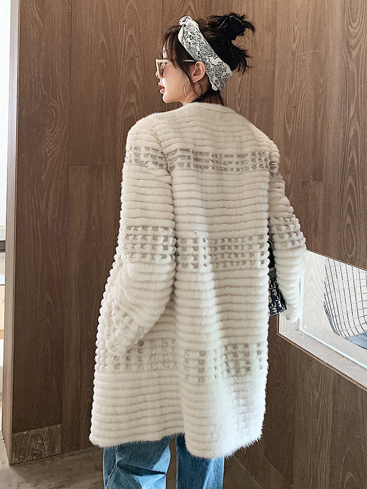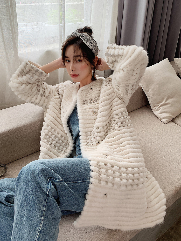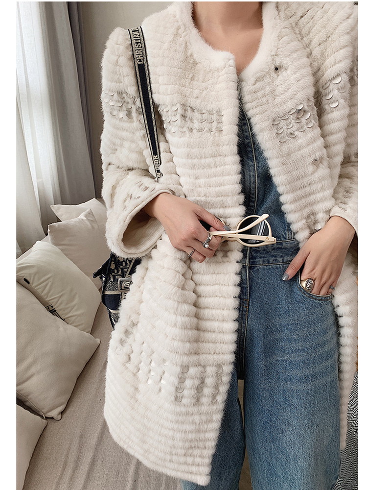 HDHOHR High Knitted Mink Fur Coats Natural Mink Fur Jackets Sequin Decoration Winter Female Fur Parkers