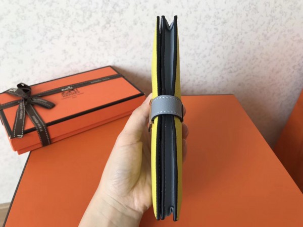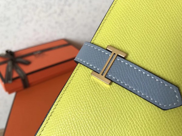 Hermes Bi-Color Epsom Bearn Wallet Soufre/Blue Lin