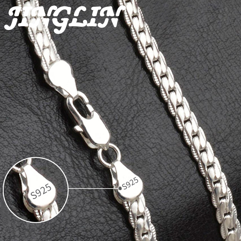 JINGLIN 925 Sterling Silver 6mm Full Sideways Necklace 8/18/20/22/24 Inch Chain For Woman Men Fashion Wedding Engagement Jewelry