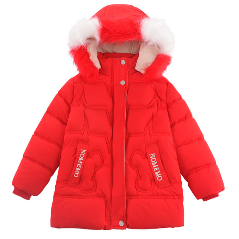 LANBENA Children's winter down jacket able children's medium and long printed wool collar hooded cotton