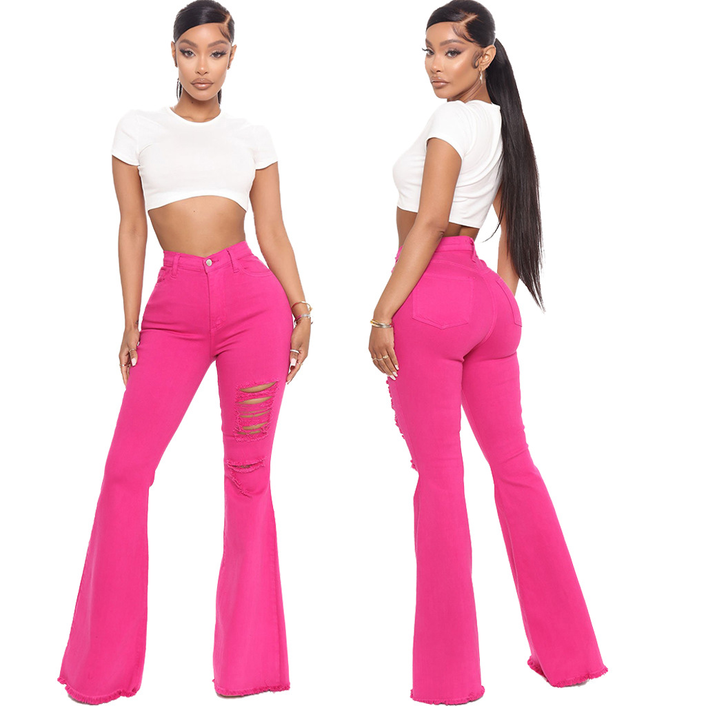 Ladies Jeans Flared Pants Super Stretch Jeans Orange Slim Pants XL Ripped Jeans Women's High Waist Rose Red Jeans Y2K