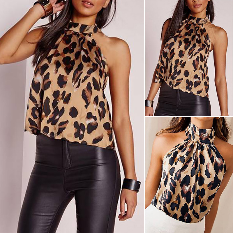 Description: Gender: Women Season: Summer Color:Leopard Material: Polyester Pattern Type: Leopard Print Decoration:None Sleeve style: Sleeveless Collar:Halter Type: Women Blouses Fabric: Fabric has some stretch Style: Casual Size Available: S,M,L,XL,2XL Measurement in inch Size: S, Bust: 33.1'', Length: 20.1'' Size: M, Bust: 34.6'', Length: 20.5'' Size: L, Bust: 36.2'', Length: 20.9'' Size: XL, Bust: 37.8'', Length: 21.3'' Size: 2XL, Bust: 39.4'', Length: 21.7'' Measurement in CM Size: S, Bust: 84cm, Length: 51cm Size: M, Bust: 88cm, Length: 52cm Size: L, Bust: 92cm, Length: 53cm Size: XL, Bust: 96cm, Length: 54cm Size: 2XL, Bust: 100cm, Length: 55cm